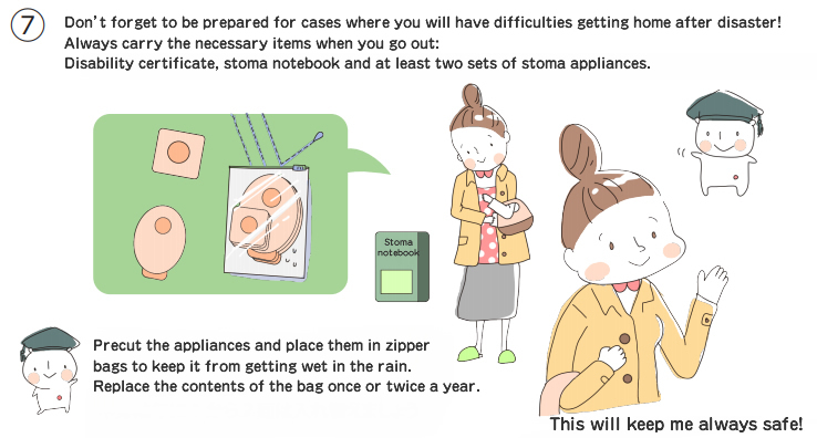 - Have a travel bag ready in preparation for disasters with 10 days' supply of stoma bags and stoma care supplies necessary to change the bag .